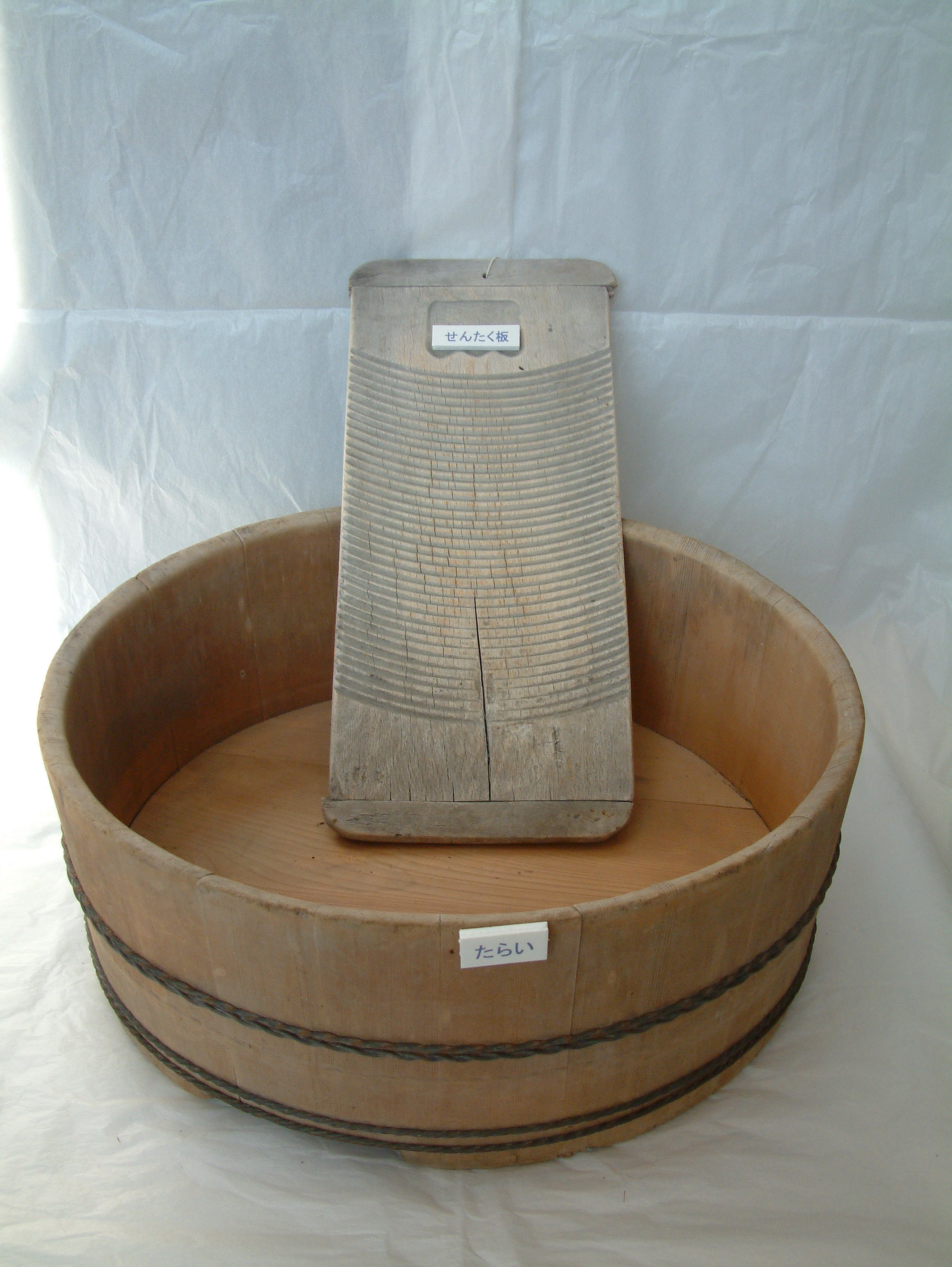 木製のたらいと洗濯板の写真 拡大画像 (JPEG: 1021.4KB)