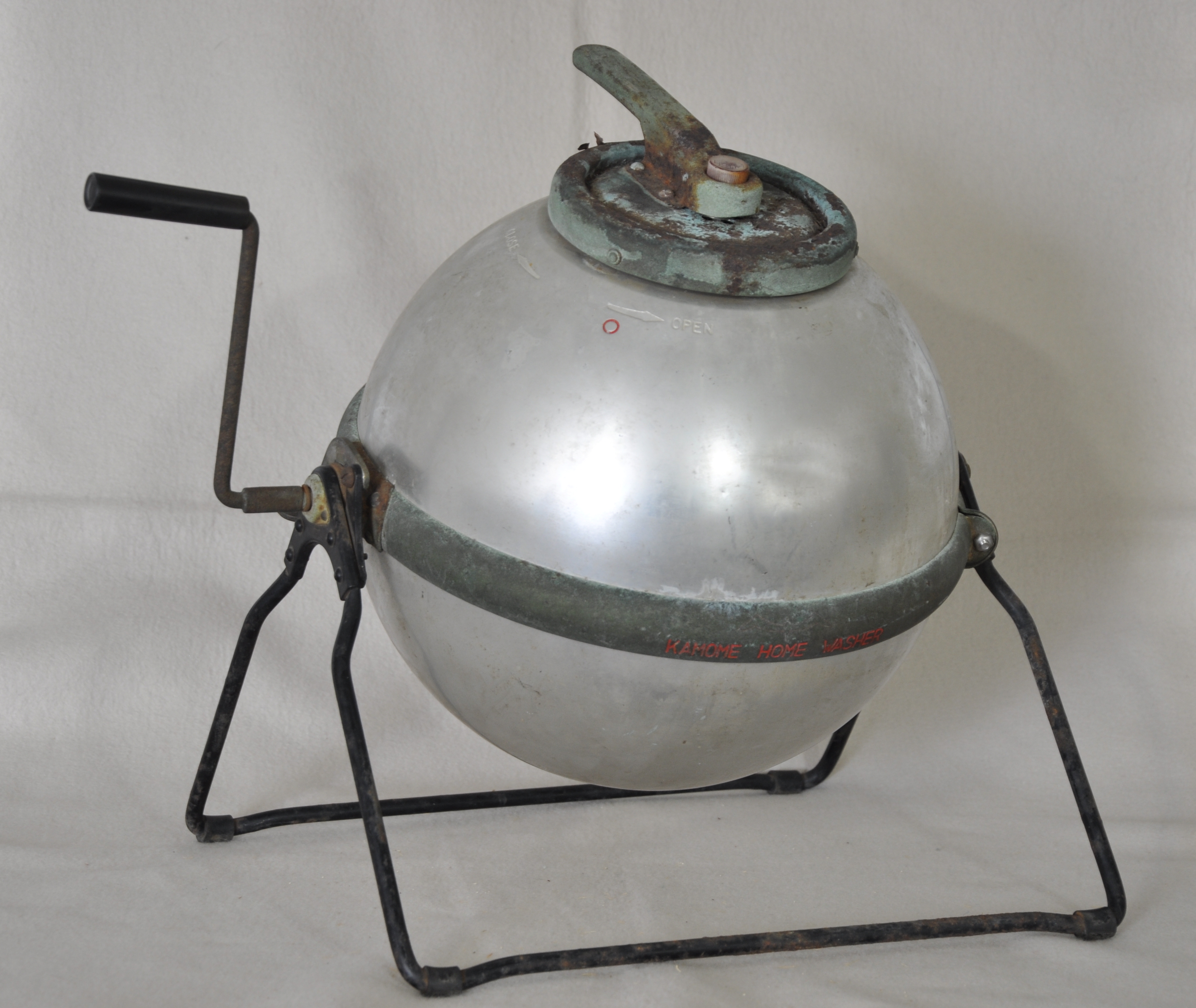 球形でレバーがついた昔の洗濯機の写真 拡大画像 (JPEG: 3.2MB)