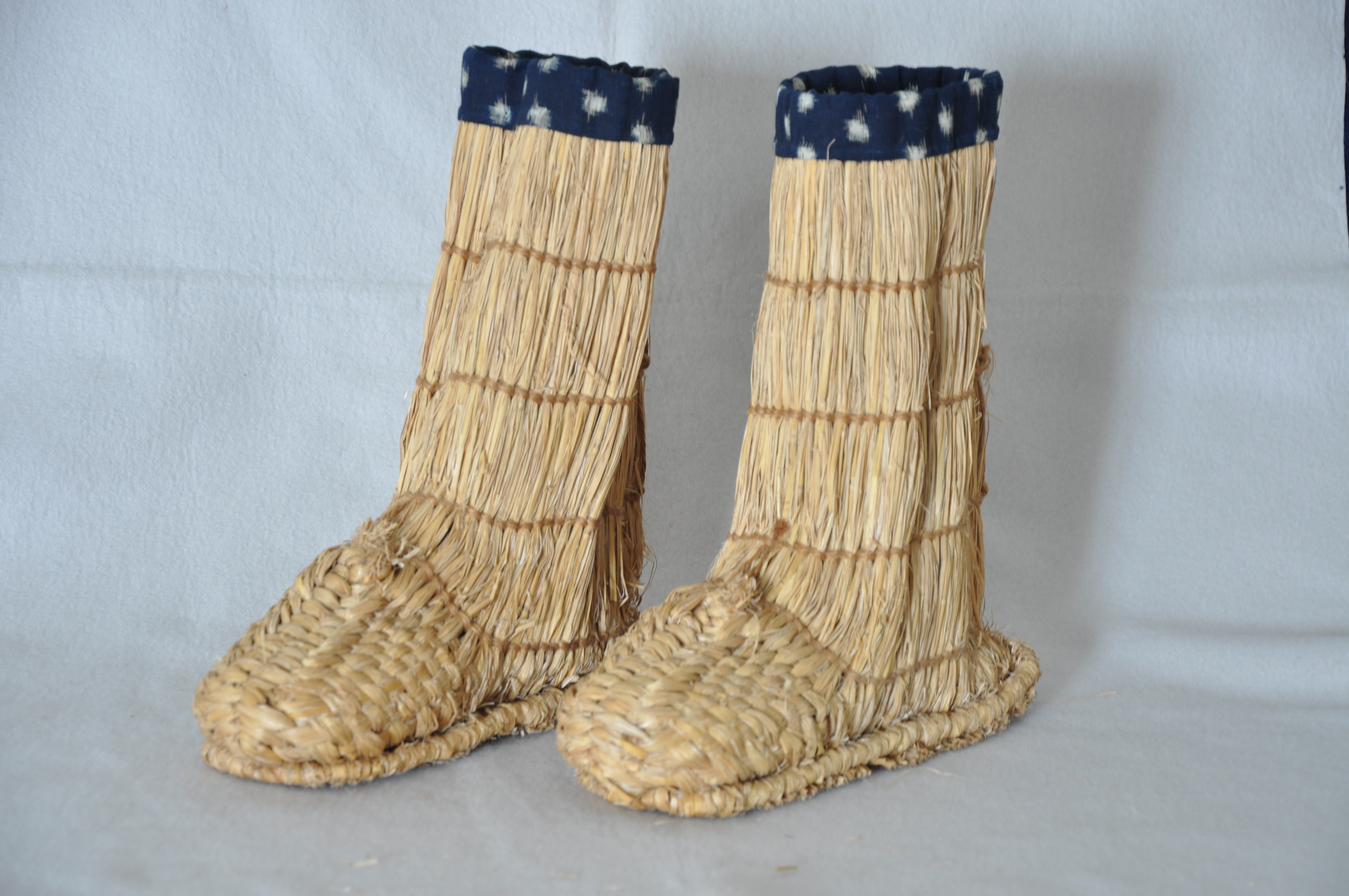 藁を編み込んで作られたわらぐつの写真 拡大画像 (JPEG: 4.0MB)