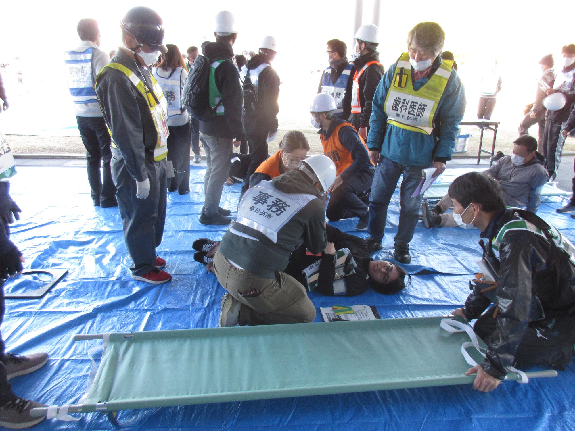 市内病院で実施された「災害時医療救護訓練」のボランティアに学生 21名(1年生 16名、2年生 5名)が参加しました!