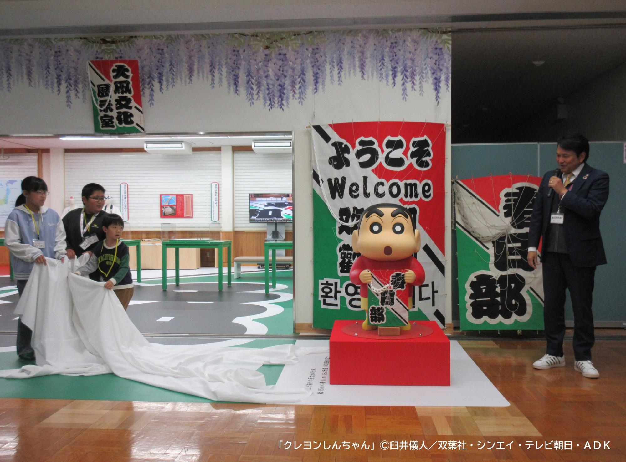 『クレヨンしんちゃん』モニュメントお披露目会 in 教育センターの様子をご紹介